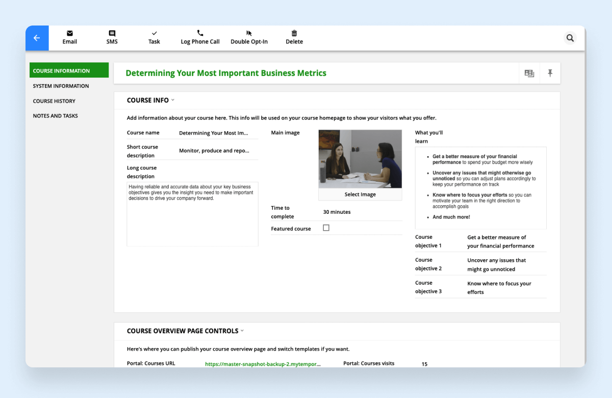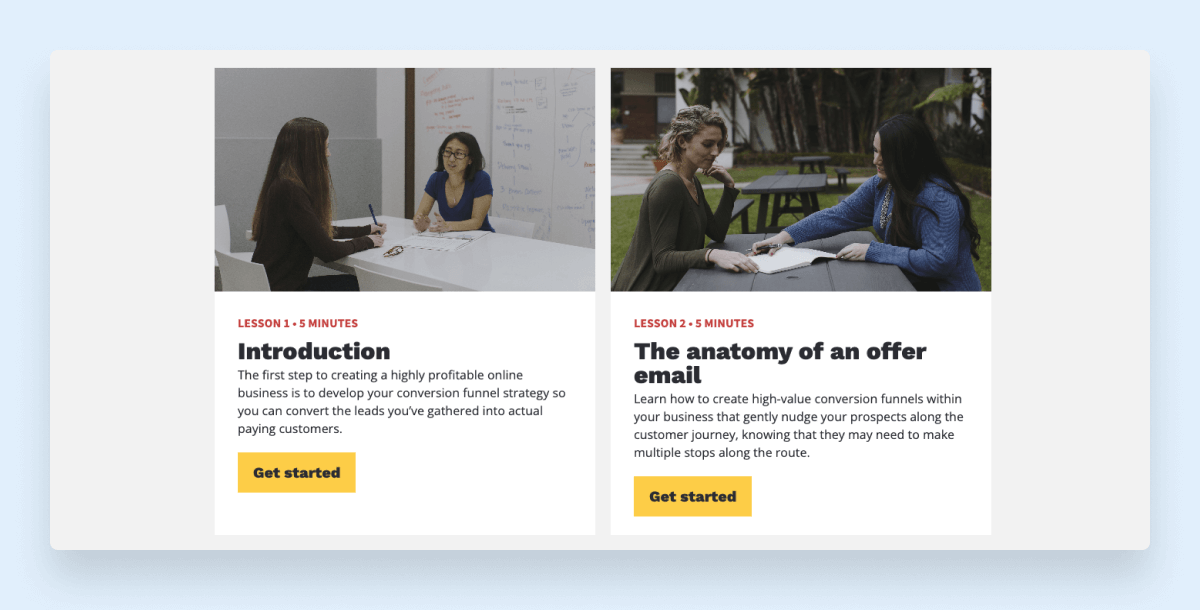 - Plug your course content into lesson templates to easily publish